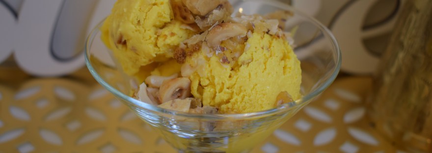 După cum vă spuneam, am încercat de curând o înghețată de cardamom, a fost absolut delicioasă și am vrut neapărat să prepar și eu una, însă nu mi-a plăcut culoarea ei, așa că am decis să las să intre în scenă și iubitul meu șofran. Proiectând desertul, simțeam totuși că lipsește ceva și am decis să adaug niste alune de pădure caramelizate, care completează de minune cele două arome deja foarte puternice. Toate trei se iubesc și se unesc tantric, până la devorare, exact ca în versurile lui Ferdousi de mai jos: