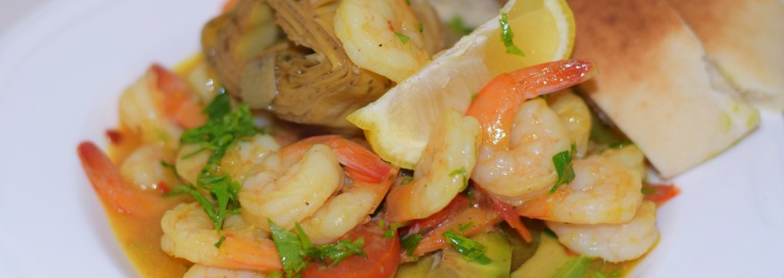 - Să montăm farfuriile, zic: Avocado se decojește, se taie pe jumătate, iar apoi feliile (câte o jumătate pentru fiecare porție) se așează pe farfurie, sub formă de evantai; se stropesc cu puțină zeamă de lămâie. Peste feliile de avocado se așează creveții și o parte din sos, bucata de anghinare și un sfert de lămâie. Se servesc fierbinți, cu pâine proaspătă și un pahar de vin alb rece și răcoritor. Poftă bună!