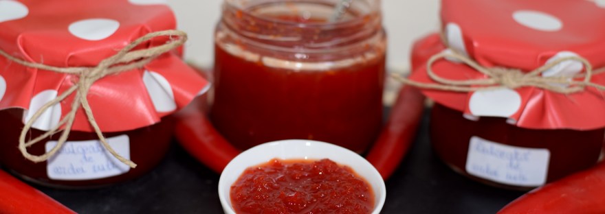 Am descoperit dulceața de ardei iute absolut întâmplător, în urmă cu niște ani la un târg de produse tradiționale. Inițial, mi s-a părut exotico-dubioasă (din categoria: nu știe țăranu’ ce-i ăla șofranu’ 🙂 ), dar i-am dat o șansă și nu am regretat deloc. De atunci, dulceața aceasta a fost nelipsită în cămara noastră și, de ceva timp, o prepar și eu. Nu este o filozofie mare, merge destul de repede, însă este important să folosiți mănuși calitative și ceva mai groase, altminteri vă va ustura puternic pielea. O recomand cu drag pentru fripturi, mi se pare că, împreună, alcătuiesc o pereche ideală de savoare, consistență, aromă și pasiune. Cred că a servi o bucată de carne bine rumenită cu o garnitură pe măsură și dulceață de ardei iute este precum o noapte fierbinte de amor. Nu intru în detalii :). Sper că v-am convins și o veți încerca și voi. Nu vă recomand să o cumpărați din comerț, deoarece nu are nicio legătură cu cea preparată în casă. Cel mult, o puteți achiziționa din piață, de la persoane de încredere. Dar….mai bine o faceți chiar voi, satisfacția va fi pe măsură, de gust nu mai vorbesc!
