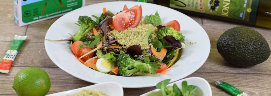 Preparatul de astăzi este o salată mixtă cu rawmazan (= parmezan vegan) și dressing de avocado, CHLORELLA fiind vedeta ce ne însoțește în escapada sănătoasă din acest weekend. Și nu orice chlorella, ci Sun Chlorella “A”. Înainte să trecem la rețeta propriu-zisă și, deorece intenționez să vă prezint și alte rețete cu acest superaliment, consider că este util să vă ofer și o scurtă descriere a ei.