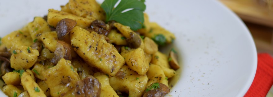 Vă povesteam într-un articol zilele trecute despre uleiul de floarea soarelui infuzat cu hribi pe care l-am descoperit recent și pentru care am făcut o mare pasiune. Dragoste la prima vedere, cine-ar fi crezut? Să iubesc uleiul cu atâta plăcere….nu am mai văzut. Uneori sunt chinuită (și) de talentul de scriitor, așa că mă inspiră diverse melodii pe care le fredonez cu drag atunci când gătesc. Nici Ilie Micolov nu este o excepție :). Dar haideți să revenim la subiectul nostru, preparatul acesta nemaipomenit care a luat naștere la o sesiune de testare și a ieșit fabulos de la prima încercare. Inspirația mea a fost, fără îndoială, uleiul infuzat cu hribi care m-a atras ca un magnet în bucătărie aducând cu sine și ideea preparatului. Aveam niște hribi deshidratați din Italia, o cremă de trufe și multă poftă de ceva bun. Lumea se sperie de gnocchi considerând că sunt dificil de realizat, dar vă asigur că nu este deloc așa.