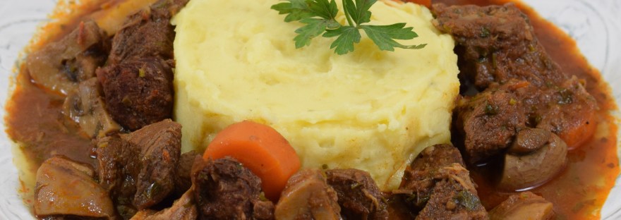 - Se servește cu pireu de cartofi, paste sau mini găluște.