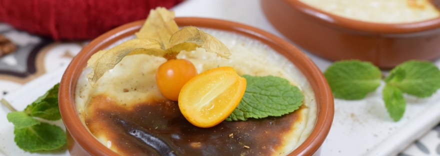 - În tavă, se toarnă apă până la jumătatea formelor de ceramică. Se introduce tava în cuptor și se lasă câteva minute până când suprafața desertului se rumenește și se formează o crustă demențială.
