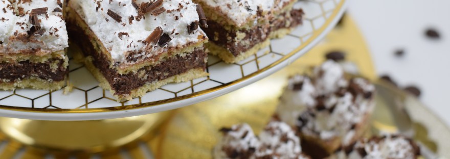 În peripeția dorului de gustul copilăriei, am pornit de la rețeta mătușii mele, dar am făcut câteva modificări, mai exact adăugiri, și sunt mulțumită de rezultat. În rețeta clasică nu apare smântână în aluatul pentru foi; nu apar nucile și vișinile în cremă, iar bezeaua este una elvețiană, pe care am înlocuit-o cu una italiană. Ah, nici stratul subțire de gem de măceșe nu face parte din decorul tradițional. Dacă v-am trezit curiozitatea, vă invit să vedeți despre ce este vorba.
