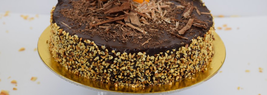 - Pentru ganache: se încălzește frișca și se toarnă apoi peste ciocolată. Se amestecă energic după 3 minute. Se lasă la răcit la temperatura camerei, apoi se toarnă deasupra desertului. Marginile se ung și ele cu un strat subțire de ganache și se tapetează cu alune de pădure mărunțite. Se ornează cu fâșii de ciocolată și un physalis sau orice altceva doriți.