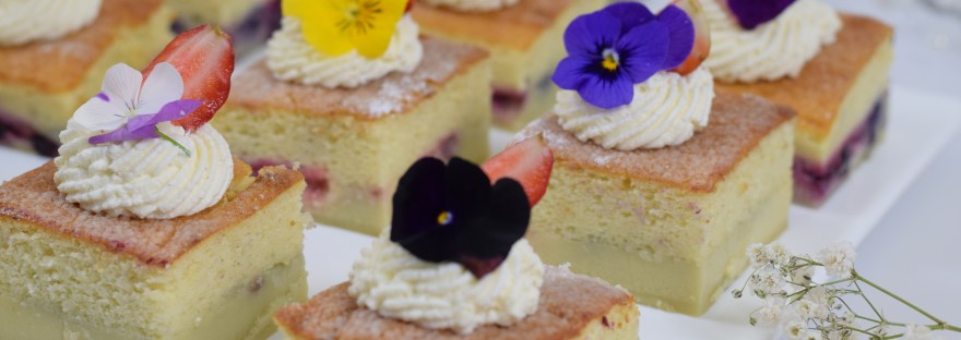 - Se porționează și se decorează cu aveline de cremă, fructe și flori comestibile.