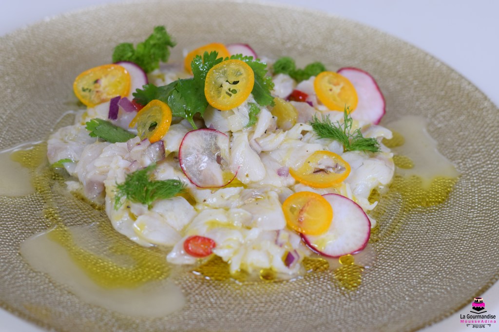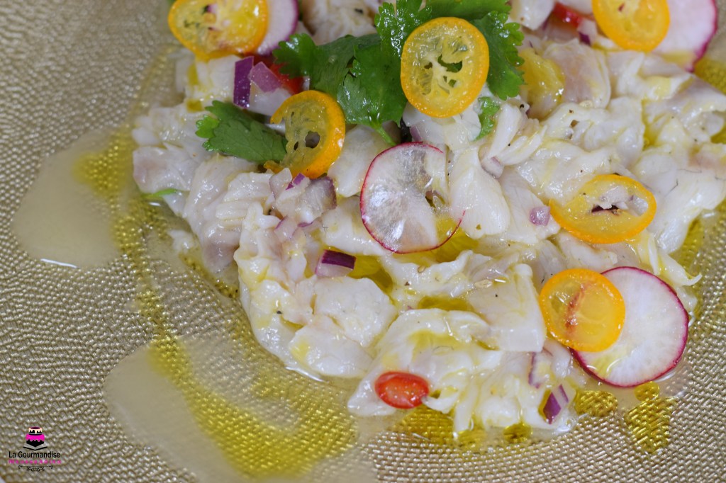 Originar din Peru, ceviche se numără printre preparatele pe care le-am descoperit destul de târziu în parcursul meu culinar, dar care m-a fascinat de la primele degustări. Deloc greu de preparat și având la bază doar câteva ingrediente, este un aperitiv de excepție îndeosebi în momentele în care aveți musafiri și doriți să impresionați. Poate părea ciudat să mănânci carne nepreparată termic, dar marinarea sa conduce automat la trecerea peștelui din starea sa crudă către o alta, în care acidul ”gătește” carnea (se va observa inclusiv în ceea ce privește coloritul). Ceviche se consumă imediat; nu se depozitează pentru ”mai târziu”. Deși carnea nu mai este crudă ca în starea sa de început, nu este nici preparată termic, deci mare grijă la manipulare și consum! Trebuie să folosiți carne cât mai proaspătă, cu peștele și fructele de mare nu este bine să riscați. Din experiență proprie, dar și din studiul parcurs, este recomandat să nu folosiți pește congelat.