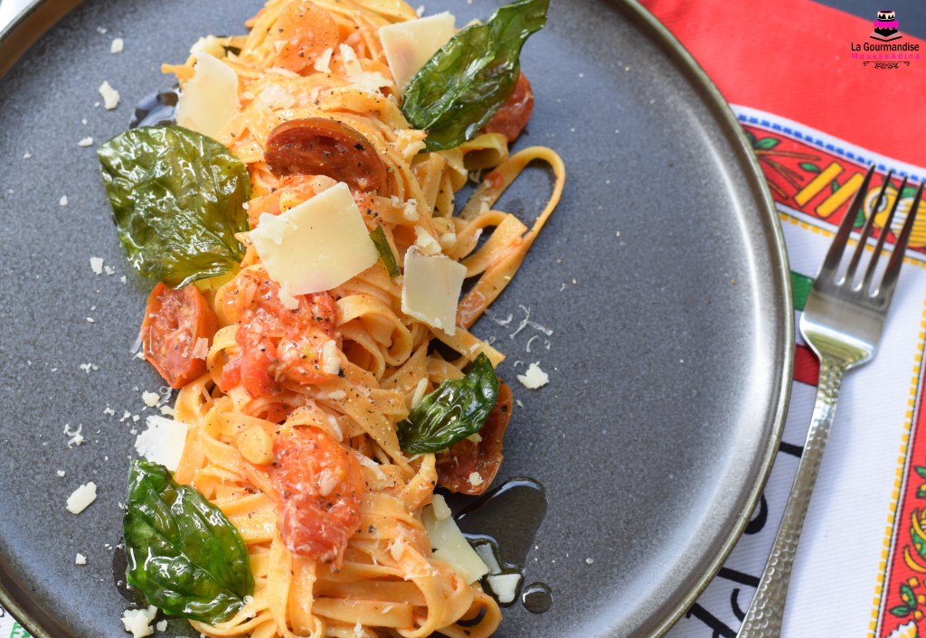 - Când sunt al dente, pastele se scot din apă și se răstoarnă peste ingredientele din tigaie, se lasă la gătit 1-2 minute, să îmbrace sosul și să se întrepătrundă aromele.