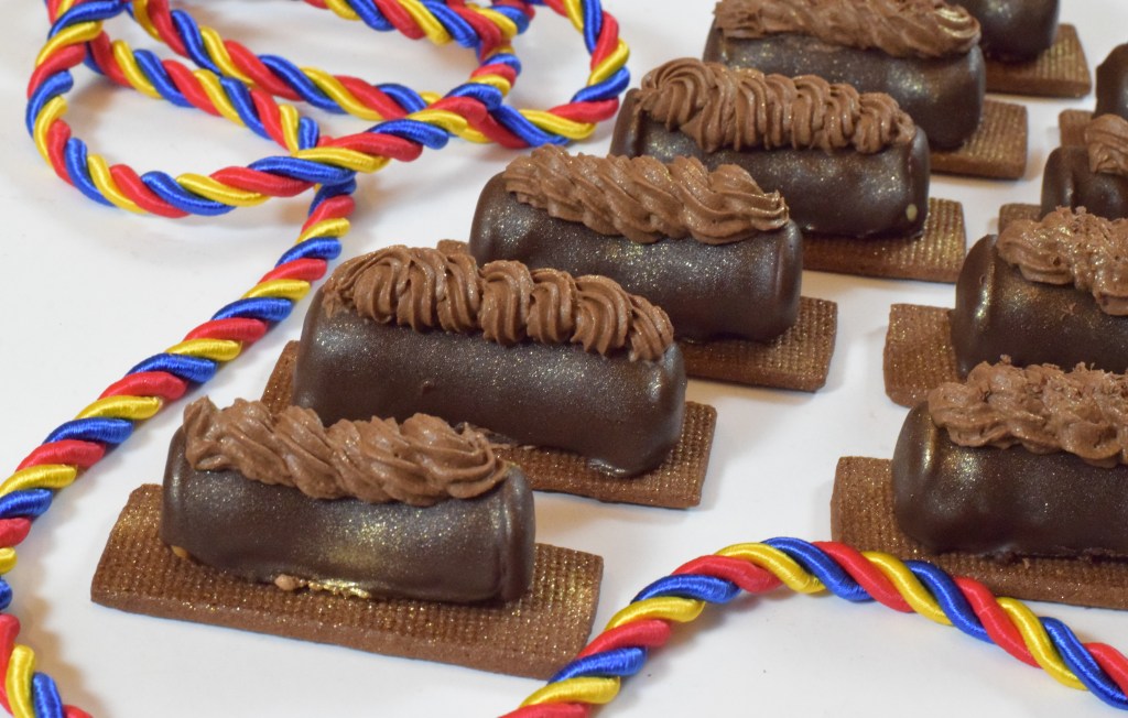 Metodă de preparare: Frișca se încălzește până la punctul de fierbere și se toarnă peste ciocolata tocată mărunt. Se lasă la odihnit 5 minute, se adaugă romul, iar apoi se emulsionează cu un mixer vertical. Se lasă la solidifiat câteva ore la frigider, apoi se pune într-un poș cu dui rotund. Se toarnă batoane de 6 cm lungime, se lipesc la ambele capete discuri de langues de chat și se congelează. Dimensiunea duiului trebuie să se potrivească cu cea a langues de chat pentru realizarea unui desert perfect.
