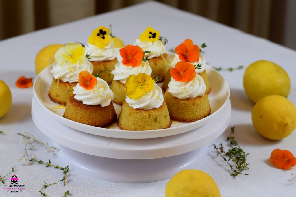 Zilele trecute am intrat într-o brutărie tip bistro de unde cumpăr pâine uneori și am văzut în vitrină niște prăjiturele gingașe, financiers cel mai probabil, cu un aspect care inspira aromă bună, onctuozitate, fără a-și pierde însă din calitatea și reprezentativitatea unui blat specific acestui fursec franțuzesc. Am zărit în ele, deși cu o apariție timidă, și niște urme de cimbru. Mi-am luat pâinea și untul și am plecat cu o bucurie puerilă în suflet știind că obsesia amintirii lor nu va conduce decât la a încerca și eu reproducerea lor, într-o formă încă necunoscută la acel moment. Prea m-au intrigat acele raze de soare cu inserții verzi și urme vagi de coajă de lămâie. Cum le-am asociat cu făina de mălai chiar nu știu, având în vedere că nu aveau nicio placă descriptivă; ședeau blânde acolo, în speranța că vor atrage suficienți gurmanzi încât să nu-și irosească existența într-o vitrină dintr-o brutărie. Dar mă bucur că am făcut-o. Îmi amintisem și că iubita și draga de Nigella Lawson are o rețetă de prăjitură cu lămâie și mălai pe pagina ei și nah…cine caută, găsește :D. Am preluat aluatul de la ea, cu modificări minore, am schimbat proporțiile la sirop și am adăugat și o avelină de frișcă, chiar mi-am dorit să fie mici bijuterii dulci care să pună în valoare gena mea de român vero. Et voila! Cam asta a ieșit. Rețeta Nigellei poate fi accesată aici: https://www.nigella.com/recipes/lemon-polenta-cake