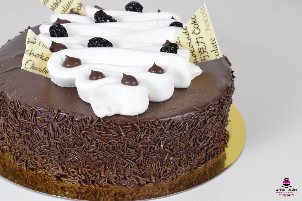 Pentru ganache de ciocolată: 250 gr ciocolată neagră (60%), 220 gr frișcă lichidă, 30 gr vișinată, 100 gr vișine din vișinată sau vișine la borcan (fără sâmburi).