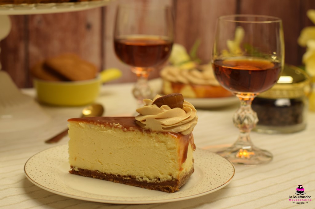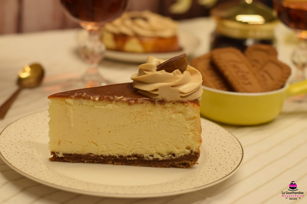 Mod de preparare cremă: Se spumează brânza cu zahărul și semințele de vanilie cca 2 minute, la viteză medie ( cu paleta mixerului). Se adaugă ouăle și gălbenușul treptat și se mixează până sunt încorporate. Se adaugă amidonul, smântână lichidă pentru frișcă, untul topit și răcorit, zeama de lămâie și se mai mixează cca 1 minut. Se toarnă peste baza de biscuiți și se nivelează. Se bate tava de blatul de lucru pentru a elimini eventualele bule de aer formate. Tava se așază într-o altă tavă în care se toarnă apă. Se coace timp de 2 ore. Se lasă la răcit în cuptor, iar apoi în frigider peste noapte. A doua zi, se scoate din formă cu grijă și se decorează.