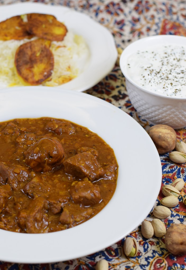 Khoresh-urile – sunt, de asemenea, parte intrinsecă a acestei gastronomii, fiind varianta persană a tocănițelor noastre (deși diferă enorm ca gust). Sunt servite alături de orez. Și aici poate fi folosit șofranul pentru conferirea unor note distincte. Cele mai cunoscute khoresh-uri sunt: koreshe gheyme (carne de miel/ vită, linte galbenă, lămâi uscate + vinete și/ sau cartofi prăjiți), khoreshe ghormeh sabzi (realizat cu o varietate de verdețuri și fasole roșie) și khoreshe fesendjan (o tocană de sărbătoare, realizată cu rață sau pui, nuci măcinate și sos de rodii).