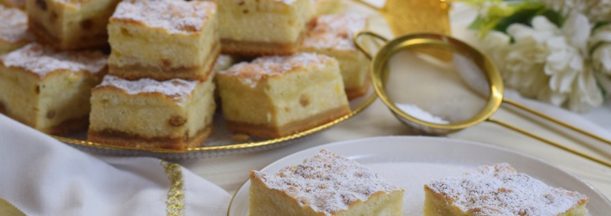 Una dintre prăjiturile care mi-au marcat copilăria în cel mai profund și pozitiv mod posibil este prăjitura cu brânză, cea pe care mătușa mea o numea ”prăjitura cu juma de ou” (nu știu care este explicația, dar în rețeta ei figura 1/2 ou :). Reflectând zilele trecute la diversitatea de pofte care îmi nelinișteau nu… Continue reading Prăjitură cu brânză de vaci și stafide