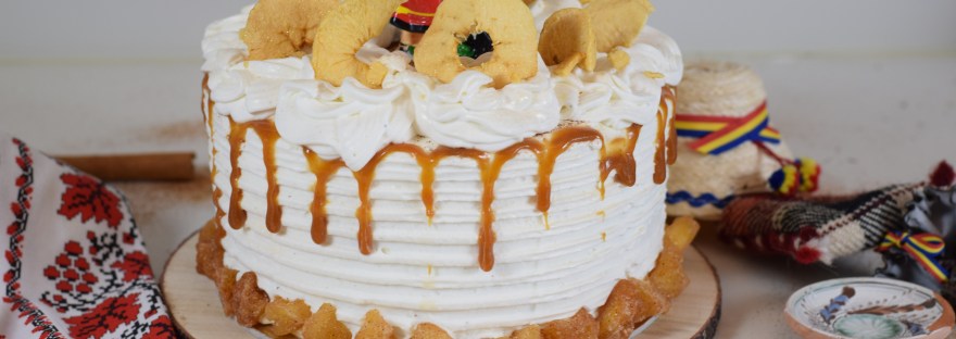 Tort de mere îmbrăcat în cremă de mascarpone și frișcă