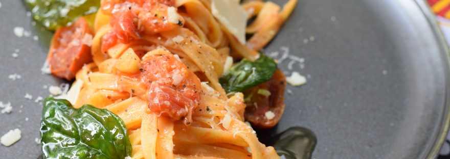 Dragii mei, nici nu vă puteți închipui cât de gustoase pot fi niște paste atât de simple, fără carne! Am pornit de la o rețetă de bază învățată la cursurile de bucătar și am dezvoltat-o după imaginația și dorința de moment. Dacă n-ar fi vorba despre usturoiul copt, ar merge în câteva clipe, dar dacă… Continue reading Tagliatelle în sos de roșii, cu busuioc și usturoi copt