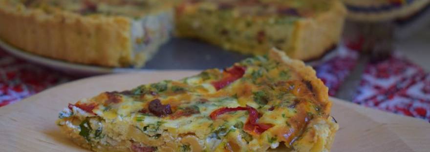 Quiche cu cârnați ardelenești, cașcaval afumat și ceapă, bien sûr